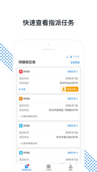 软件展示了关于用户的待接收任务,可以更好的查看指派任务。