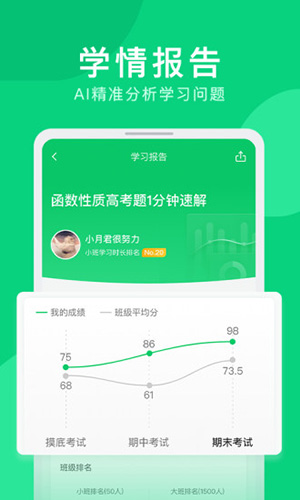 4、精准学习分析:大数据总结分析学习情况,帮助家长及学生全程了解学习效果;