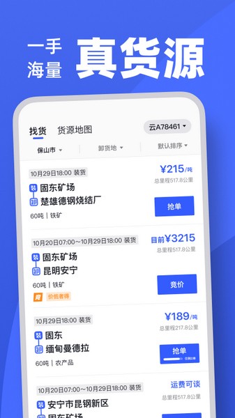 支持在线接单,用户在找到自己需要的货源后可以实时在线接单。