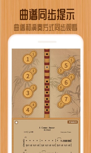 3、同步提示演奏的曲谱,轻松观看演奏的曲谱和演奏的方式,实时学习笛子吹奏;