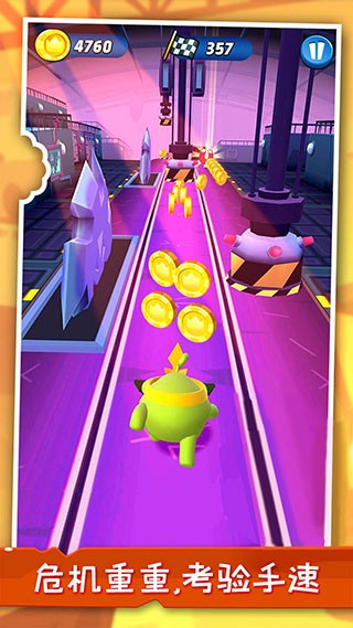 提供繁忙的街道、凌乱的屋顶、地下隧道、机器人工厂等多个五彩缤纷的关卡,每个关卡都有独特的障碍和道具设置,带来不同的挑战和乐趣。