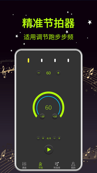 吉他调音器大师:免费专业调音器,调音精准!吉他调音,尤克里里调音,古筝调音,二胡调音,大提琴调音,小提琴调音。还带节拍器,支持音色选择,完美适配各种乐器。