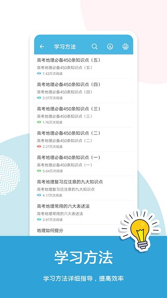 这款学习软件把高中地理的知识点分门别类整理得超清楚,而且内容特别全面。最棒的是,里面还收录了各个省市的历年真题,练习起来非常有针对性。每次做题的时候,我都能发现自己之前没注意到的一些细节,真的很有帮助。