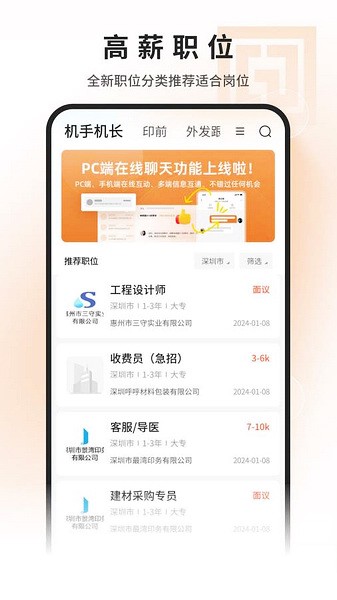 印刷人才网app是一个专门为全国印刷行业从业者打造的求职招聘软件,主要帮助用户快速找到高薪职位并提供详细的企业信息。通过这个app,用户可以随时查看简历投递进度、接收面试通知,并与企业HR实时沟通。此外,app还提供了丰富的功能模块,比如发布求职需求、分享行业资讯、推荐适合职位以及编辑和管理简历等。对于企业用户来说,平台也提供了便捷的招聘服务,包括职位刷新、人才搜索等功能。