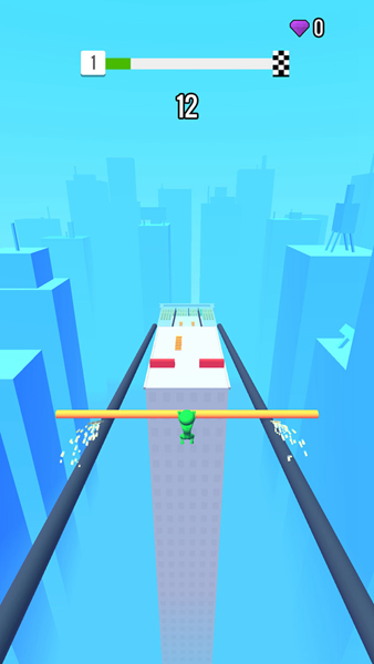 1、每个玩家都会控制自己可爱的小个子在楼顶来回穿梭,展示实力,尽可能多的收集地上的棍子。只有当你手中的棍子越来越长,你才会有更多的希望。