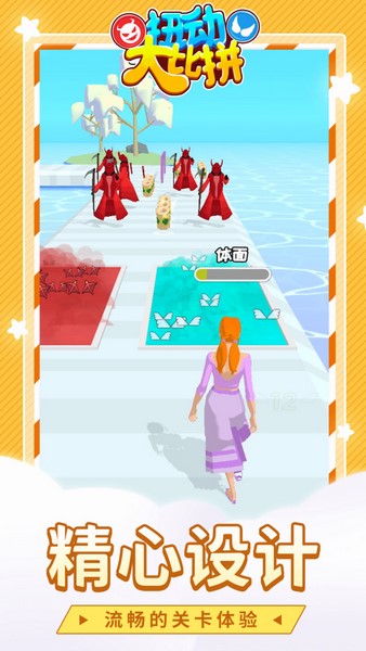 扭动大比拼是一款换装题材的跑酷游戏,玩家可以在这里控制角色一边前进一边收集途中的精美服装。这里的服装有非常多,而且一旦错过就不再有了,所以是需要玩家在短时间内思考出方案的。另外也是有很多敌人在路上阻拦我们,选择正确的道路去避开它们,然后迈向终点吧。此外随着选择风格的不同,角色最终会变成天使或者恶魔。