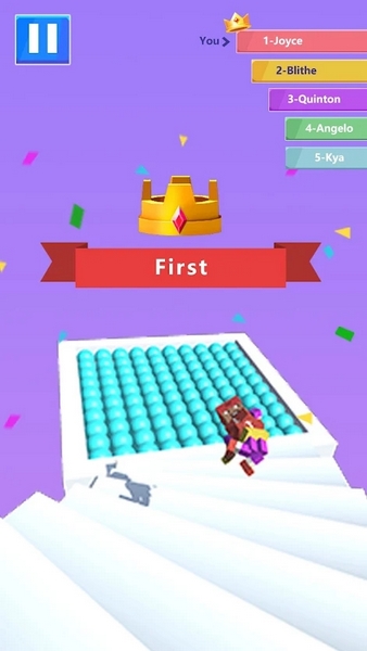 3、在与其他玩家的竞技中,利用收集到的道具加速冲刺,率先抵达楼梯顶端即可获得胜利,解锁更多可爱的角色皮肤和独特的楼梯场景。