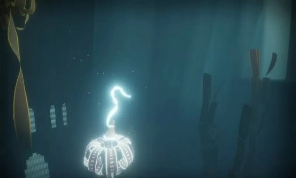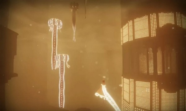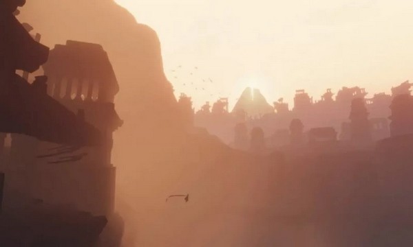 游戏的绝大部分场景都是沙漠,这种听起来完全无趣甚至令人厌烦的景色,在这款游戏中给人以截然不同的感动:你会发现包围着你的不是什么沙子,而是一种真实存在着的,时而漂浮在空中,时而又闪耀着光芒,充满生命活力熠熠生辉的生命,它们经常被风轻揉地抚过,偶尔又如雪花般轻柔地从天而降,你甚至可以控制旅人从沙丘上滑下来,就像在雪山顶上表演优雅的特技滑雪。