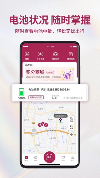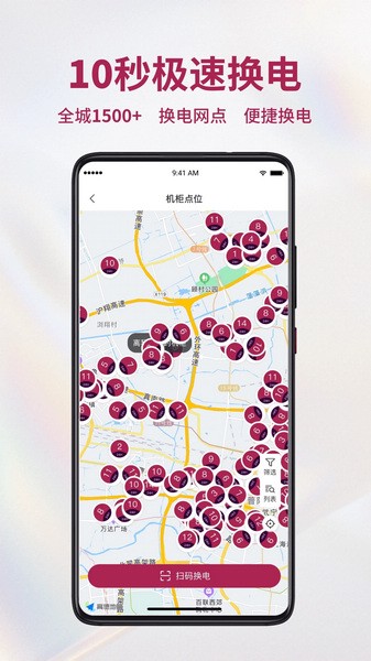 精准定位功能,智能推荐附近换电站,方便导航到站换电;