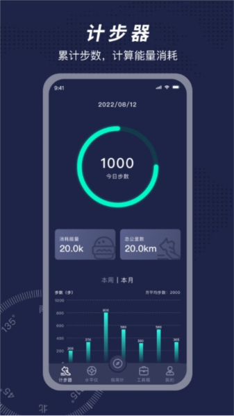 1, 计步器: 智能计算每日消耗能量,记录步数