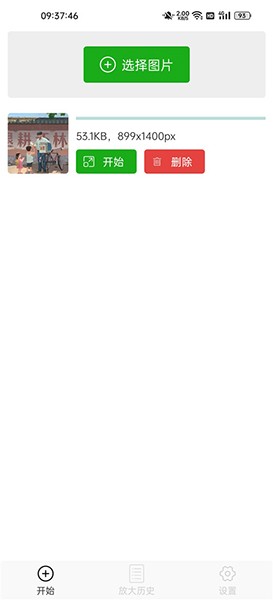 1、打开软件,点击选择图片,从手机相册里选择一张要放大的图片
