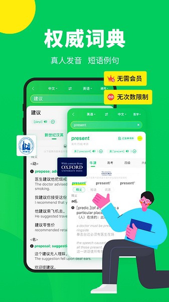 - 海量权威词典:覆盖30万本地词条,无需联网即可查看;云端500万词条,联网状态提供网络释义、同反义词、例句、中中释义和英英释义等