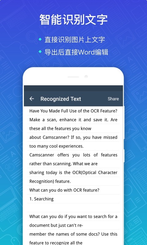 扫描全能王的智能OCR文字识别技术不仅令我能够迅速提取图片中的文字,而且准确率之高令人惊叹,极大地提高了我的工作效率。