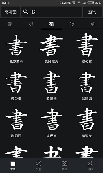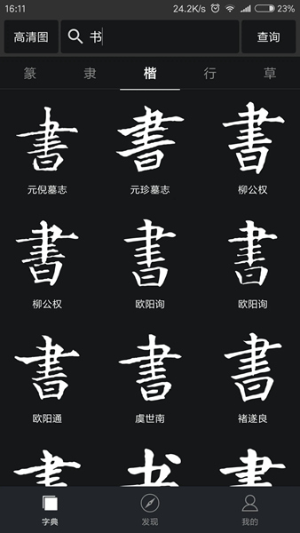 可以输入您想要查询的汉字,app就会为您展示许多名家的书法作品;