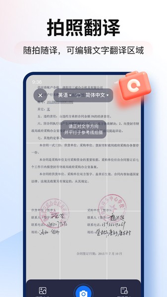 对图书、试题、路牌、菜单、广告单...随手拍照,及时获取翻译结果