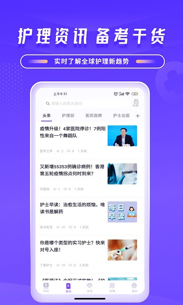 应用中的特色栏目也非常全面,包括护理知识、护理论文、医学英语等,满足不同用户的学习需求。强大的搜索功能和会员积分体系进一步提升了用户体验,让学习更加便捷和有趣。