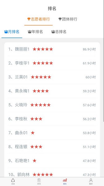 查看谁做的志愿活动最好最多