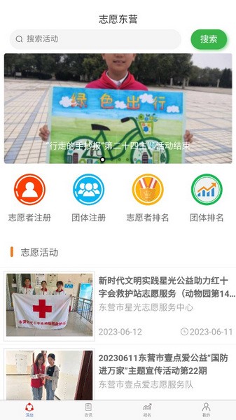 在志愿东营区app上可以了解到市区的志愿者活动信息。