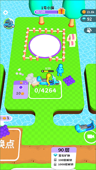 4、背包装满时,我们可以拿到兑换点进行兑换金币,拥有足够多的金币我们就能解锁小镇,雇佣工人帮助我们挖土;