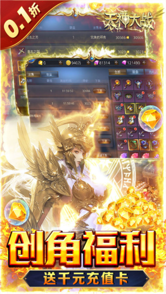 魔幻巨作MMO手游《天神大战0.1折》震撼来袭,创角送千元充值卡、海量资源与绝版称号,每日签到领现金卡和进阶材料,不花钱畅享顶级福利!魔王开启地狱之门入侵人族,危急时刻勇士继承大天使秘术,化身天使掌握全新技能,勇斗魔王拯救三界!离线挂机轻松升级,爆率超高装备全靠刷,零氪也能玩出爽快感,快来加入这场仙魔大战!