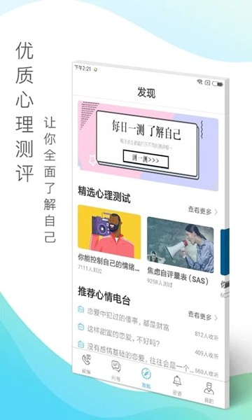 【即时语音倾诉】: 当你需要释放情绪、需求安慰或倾吐秘密时,挑选最合适的在线专家,倾听你的烦恼,立即释放你的坏情绪;