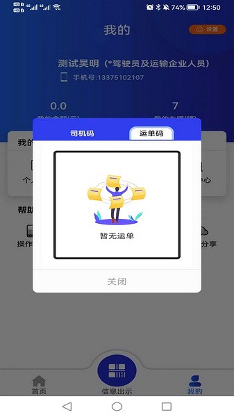 3、在货物进行交接时,可点击畅运底部中间的【信息出示】进行扫码交接