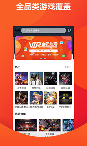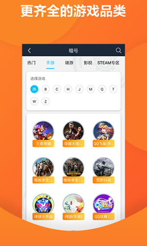 2.王者荣耀、穿越火线、绝地求生、英雄联盟等上百款游戏账号任性挑选;