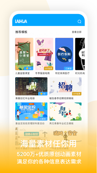 来画视频APP是一款非常实用的视频动画制作编辑的软件,其交互体验友好,操作便捷易上手,且功能相当齐全丰富,无论是想要剪辑视频片段,还是为视频配音、添加字幕等操作都能快速实现,并支持语音智能识别转字幕功能,满足你的使用需求,超全能!且其还网罗了5200万+原创动画素材可供用户随心使用,让你轻松将自己脑海中的创意实现!