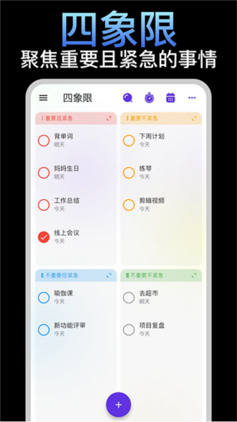 1、便捷高效:应用专注于提供便捷高效的计划管理体验,让用户能够随时掌握自己的日程安排,从而更加高效地执行要做的事情。