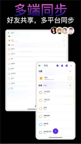 云端同步。可从手机、平板等设备随时随地查看日程安排和备忘事项。