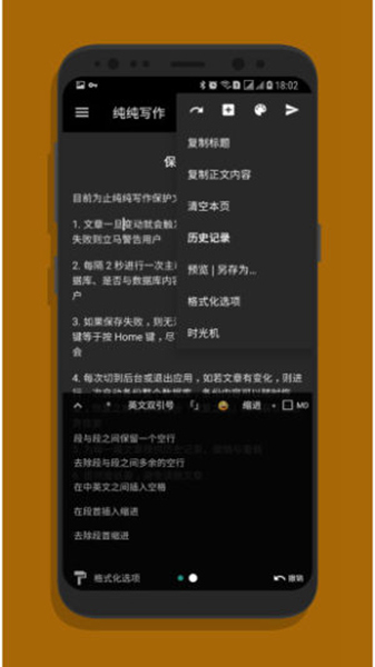 支持自动保存历史记录,即使瞬间断电或不小心把全文删掉了,或者卸载重装,仍然能够一字不漏恢复文章。
