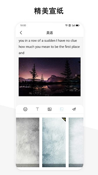 在你记录你的日记笔记的同时你可以插入记录你的精美图片,并且美遇中点击图片可编辑图片按比例裁切!