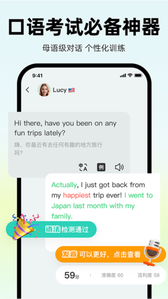 AI语法纠错,音节级打分纠音,专业语法指导,再也不用担心说错。
