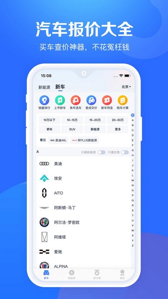 在汽车报价大全APP中,用户可以享受到购车过程中的便利服务。作为一个集汽车报价查询、车型对比、语音搜索、购车计算等功能于一体的应用,汽车报价大全让用户能够更全面地了解汽车市场和最新的车市动态,还可以通过语音搜索快速得出每款汽车的参考成交价,满足了不同用户的购车需求,大家随时都可以在该应用中轻松找到心仪的车辆。无论是购买新车还是二手车,APP都让用户能够快速上手。不仅可以查看各个车型的参数并进行比较,还可以通过软件筛选符合自己需求的车辆。同时软件还网罗了最新车市动态,更有各路专家、车友为你解答买车疑虑!赶紧下载体验吧!