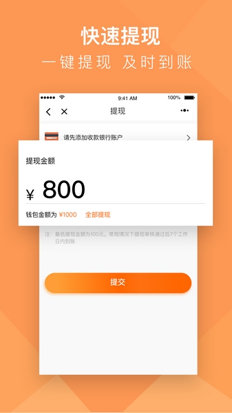 5、一键提现:能更快的将自己的收益更完整的提现出来,搬家小哥的收益更快统计;