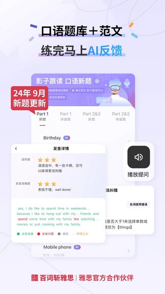百词斩雅思APP确实是个不错的备考工具,尤其是它把学习计划安排得明明白白,像我这种容易 procrastinate 的人真的太需要了!最让我喜欢的是它的 AI 互动课程,告别了传统枯燥的讲解方式,学习效率明显提升。特别是口语和写作部分,有专门的一对一辅导和提分建议,感觉比自己瞎刷题靠谱多了。