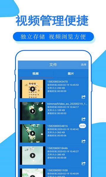 6、浏览、播放、重命名、删除、上传、分享录制好的视频