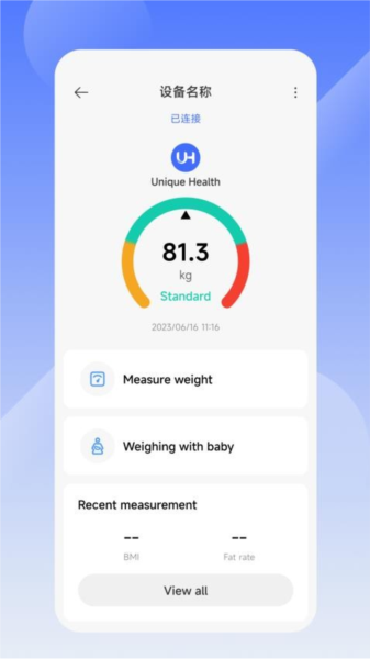通过上称测量,在应用中就能知道自己的体重数据,并能保持体重信息;