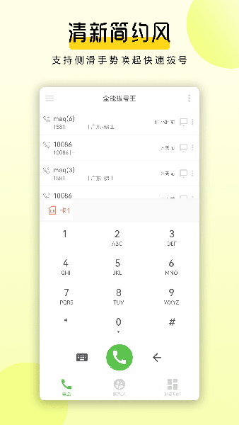 全能拨号王app是一款非常实用的智能通讯软件,主要帮助用户提高拨号效率。它支持通过输入部分号码快速找到联系人,还能同步手机通讯录,并提供客户管理工具,方便整理和访问常用联系人。对物流等行业从业者特别友好,支持扫描识别订单中的电话号码并直接拨号,节省了很多时间。