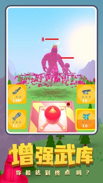 画面风格也很吸引人,用了卡通橡皮人造型和明艳的颜色搭配,攻击特效也做得简洁流畅,整体感觉轻松愉快。操作上没有太多复杂的地方,容易上手,但要玩得好还是需要一定的策略和技巧。