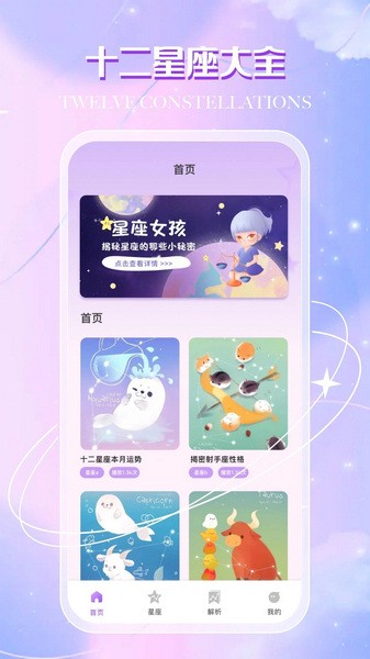 星座运势:全面解析每日星座运势,了解十二星座今日、明日、本周、本月、本年的运势变化,事业发展,情感变动。