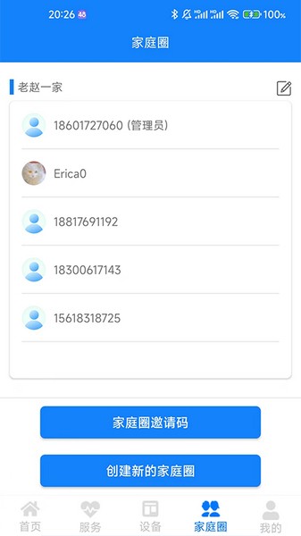 2、通过家庭邀请码来邀请各个家庭成员加入;