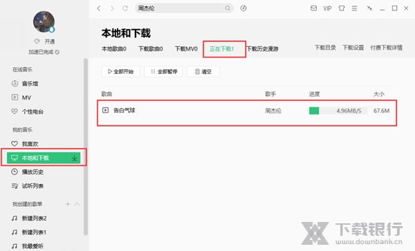3、点击下载后,用户可以在QQ音乐的界面左侧点击本地和下载选项,在界面正在下载选项中可以看到mv正在下载,用户只需要耐心等待下载完成后就可以下载成功了。