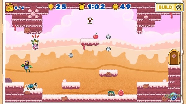 游戏闯关时提供多种模式供玩家游玩,有简易闯关(直接跳跃躲避迎面而来的怪物抵达终点即可),也有杀怪闯关(玩家需要清理掉房间的所有怪物然后抵达终点才算过关),还有一种很有趣的玩法,这个玩法地形已经给你生成好了,但是机关以及怪物需要玩家自行摆放,然后再开始闯自己DIY的关卡。操作方面有点像炫彩版的马里奥,灵活运用英雄的跳跃、旋转和地面重击打出属于你的各式各样闯关秘籍。