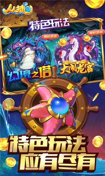 游戏对渔场场景进行了全面的主题升级,每个场景都对应着不同的主题内容。这些主题不仅丰富了游戏的视觉效果,还为玩家提供了更加沉浸式的捕鱼体验。