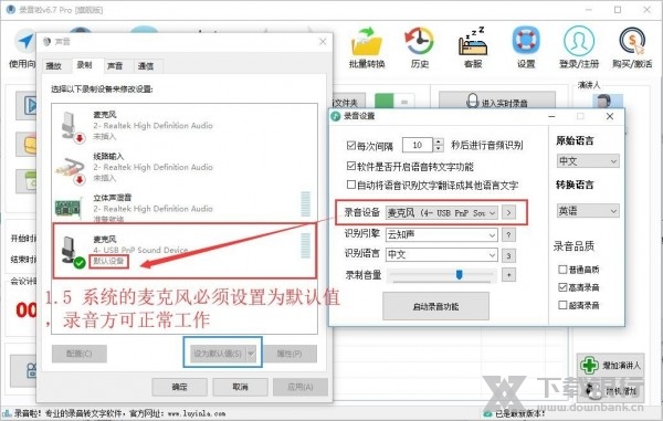 第三步: 这里我们首先要注意,录音设备一定要选择正确