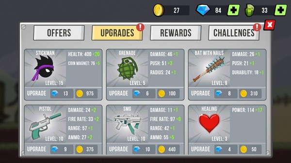 1、火柴人僵尸射击游戏中玩家可以选择不同的人物进行攻击,不同的人物也有不同的属性,只有玩家熟练了挑战的方法,才能取得游戏中的胜利