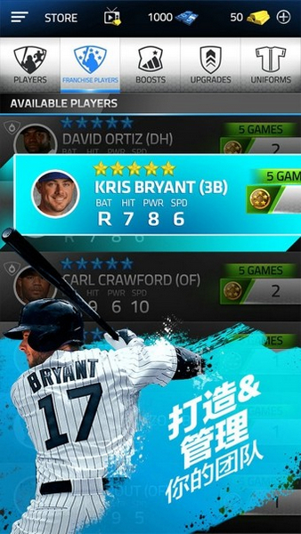 真实大联盟球员任你挑选,组建梦幻球队,南征北战登巅峰!