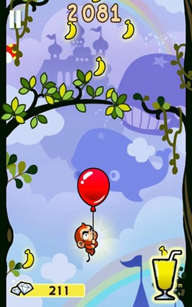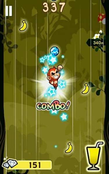 每次小悟空吃到香蕉,都会将其变成果汁储存到右下角的水杯中,果汁装满后,就能使用香蕉跳跃瞬间逃到高处,这可是在紧要关头保命的绝活哦~每次升级能量饮料,还能提高香蕉跳跃的威力,实在是居家旅行,杀人越货的不二法宝啊!