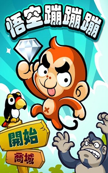 最近玩了一款叫“悟空蹦蹦蹦”的手机游戏,感觉挺有意思的。这是一款竖屏画面的跳跃类游戏,操作简单但很有挑战性。你需要控制悟空在丛林里不断跳跃,躲避大猩猩的追捕,同时收集各种道具和钻石。